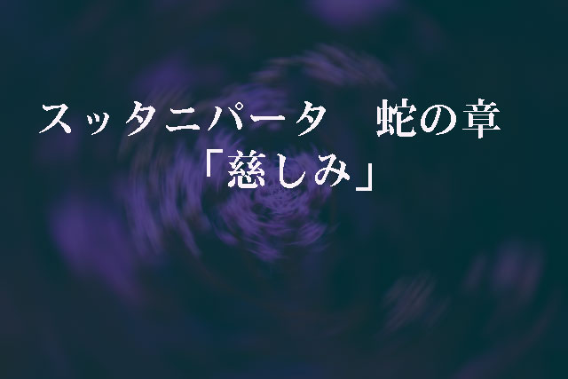 スッタニパータ 蛇の章 「慈しみ」 仏教諸聖典のうちでも、スッタニパータは最も古いもののひとつ。 悩まそうとして怒りの想いをいだいて互いに他人に苦痛を与えることを望んではならない。